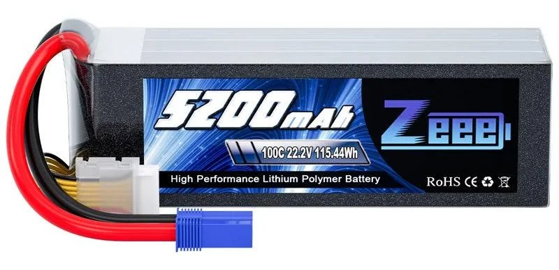 Bateria LiPo ZEEE 6S com 22.2V e capacidade de 5200mAh, ideal para aeromodelismo. Oferece alta descarga contínua de 100C para garantir desempenho intenso e confiável.